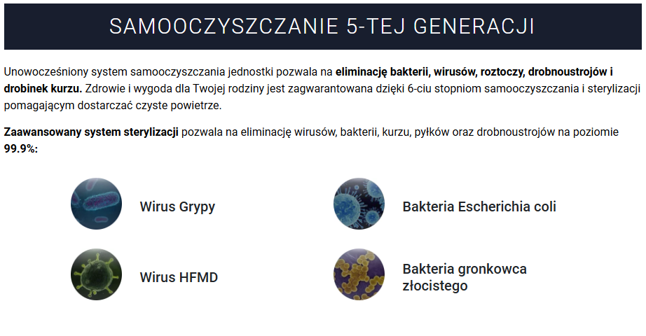 Zaawansowany filtr plazmowy, filtr PM2.5, jonizator Cold Plasma. Oddychasz czystym powietrzem – bez kurzu, bakterii, wirusów.