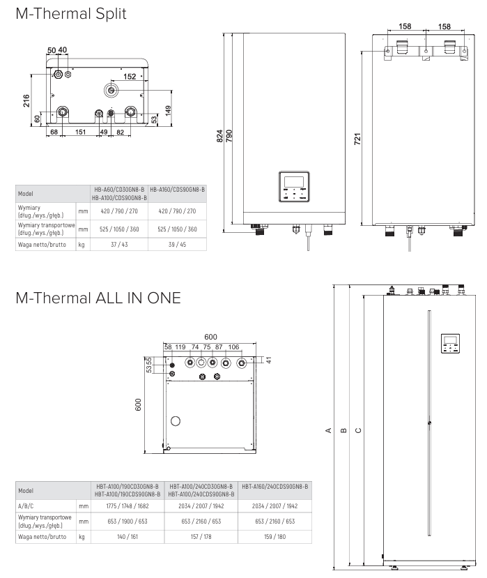 Wymiary Midea M-Thermal All in One